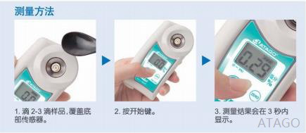 | 1、單手便能進行測量 | 2、只需2,3滴樣品就可以測量 |